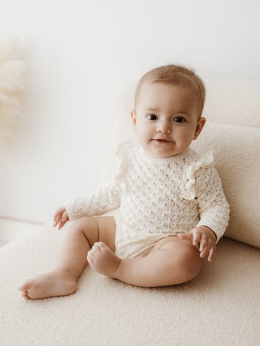 “Me encantó que tuviera ropita en el estudio. Yo iba hecha un lío con qué ponerle y allí estaba todo en tonos neutros, precioso. Fue una sesión tranquila y el resultado es atemporal total.”
